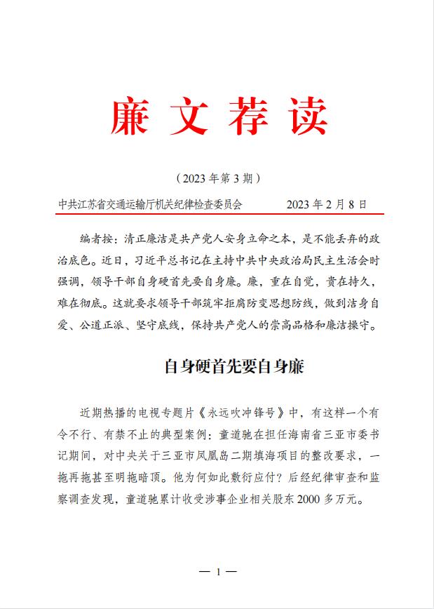 2023年廉文荐读第3期——自身硬首先要自身廉