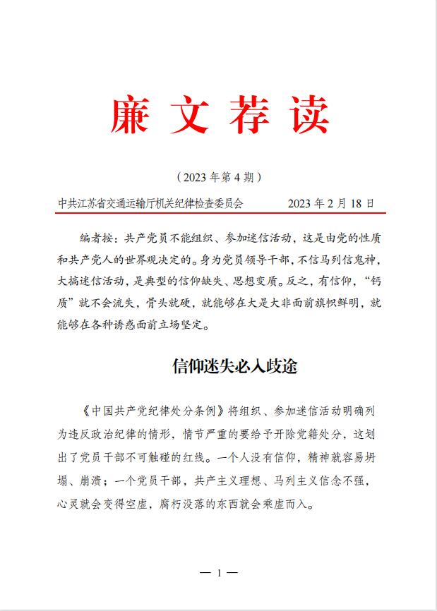 2023年廉文荐读第4期——信仰迷失必入歧途