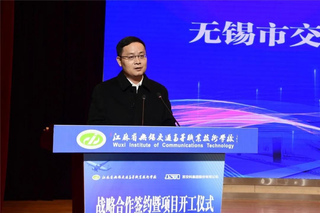 金凌副厅长在讲话中指出,生产性交通工程试验检测中心的共建,是无锡交校和苏交科集团共同落实国家和省相关政策的坚实举措和实际行动。近年来,无锡交校以产教融合协同育人为主线,以“四学院三中心”为载体,以“三教改革”为抓手,聚焦现代交通运输体系和社会经济转型发展,着力提升五年制高职人才培养质量,实现了专业结构与交通行业、区域经济、企业需求深度融合,提升了学校服务交通运输现代化建设的能力。苏交科集团拥有工程行业各领域最高等级资质,是国内基础设施领域咨询行业龙头企业、工程咨询行业首家上市公司,2022年,获得省政府颁发的“江苏省省长质量奖”,是设置奖项以来江苏省交通领域第一家获此殊荣的企业。这些发展成就为校企双方进一步高质量协同发展奠定了坚实的基础。此次共建,是无锡交校和苏交科集团共同落实国家和省相关政策的坚实举措和实际行动。他对共建生产性交通工程试验检测中心提出三点希望:要聚合校企力量,打造校企合作典范。要聚焦人才培养,满足行业技能人才需求。要聚力行业发展,服务交通运输事业。