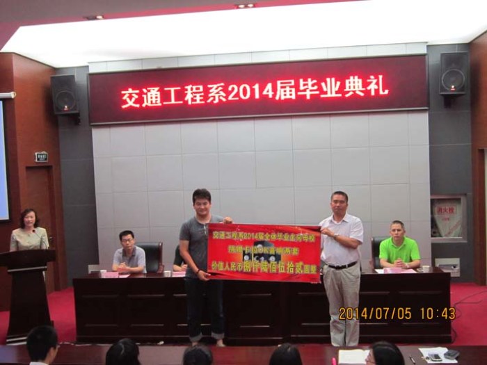 在《友谊地久天长》的旋律中,交通工程系2014届毕业生毕业典礼圆满结束。本次毕业典礼由交通工程系书记毛兰霞老师主持。