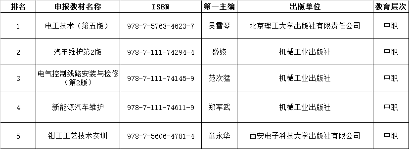 根据《省教育厅关于开展第二批“十四五”职业教育国家规划教材申报推荐工作的通知》,经个人申报、学院推荐、学校组织遴选,拟推荐以下五本教材申报第二批“十四五”职业教育国家规划教材(中职),现予以公示。