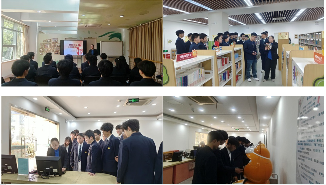 签约仪式后,无锡市图书馆少儿服务部志愿服务工作负责人、主管冯若燕老师带领学校志愿者学生参观图书馆并开展文明小义工志愿服务培训活动,培训志愿者们如何用机器借书、还书等,提升志愿者的专业素养。