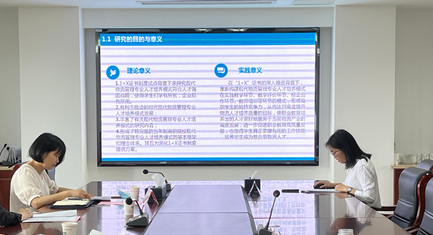 此次结题鉴定的课题有盛姣主持的《“1+X”证书制度试点背景下物流专业人才培养模式研究》1项,开题论证的课题有朱雪娟主持的《数字化背景下无锡 BtoB 跨境电商平台发展问题研究》、魏斌主持的《“黄鹄”号的时代宿命及其精神传承研究》共2项。评审会上,课题组对课题研究进行了汇报,评审专家逐一进行提问,课题组进行了相应回答,专家组给出了建议。经过集中评议,1项课题同意修改、完善后结题,2项课题同意修改后开题。