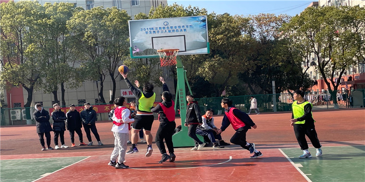 1215下午,学校第三届校园文化艺术节之校园3V3篮球赛在篮球场举办。本次比赛由学生工作处(团委)、基础教学部联合主办,篮球社承办。活动吸引了12支球队50名选手参加。