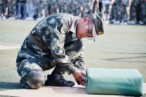 在短短的10分钟时间里,同学们的被子都变成了豆腐块,方方正正、整整齐齐,棱角分明。叠被子是军训内务整理中难度较大的一项内容,在此次活动中,同学们既掌握了叠被子的技巧,也培养了严于律己、一丝不苟的优良作风。相信经过这次技能展示,同学们将会以更加积极进取的心态和雷厉风行的作风投入到接下来的学习生活中去。