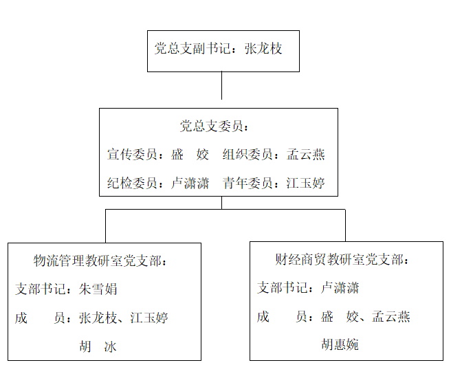 物流管理学院党总支部于2019年12月17日成立,下设物流管理教研室党支部和财经商贸教研室党支部。现有党员8人,其中:教师党员7人,教师预备党员1人。物流管理学院党总支把十九大精神和习近平总书记系列讲话贯穿于全体党员教育工作的始终,努力建设一支充满朝气、求真务实、奋发有为、勇于创新的班子队伍。以党建促特色,以创新求发展,现正为建设一流的党支部而努力奋斗。