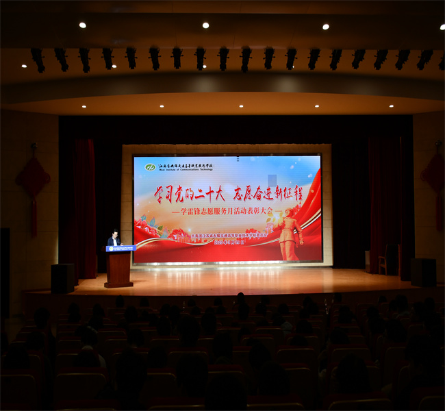 3月29“学习党的二十大 志愿奋进新征程”学雷锋志愿服务月总结表彰大会在学校礼堂举行相关职能部门负责人、各学院学工领导、校团委委员、各学院团总支书记、团支部书记、校院两级青年志愿者协会成员等500余名师生参会。会议由学生工作处副处长籍鑫慧主持。