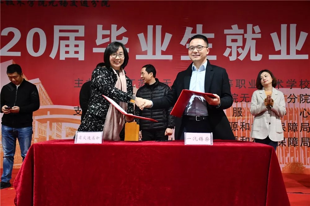 启动仪式上学校领导与苏交科集团股份有限公司、一汽解放无锡柴油机厂、无锡汉神电气股份有限公司三家企业分别签订校企合作协议,与无锡汉神电气股份有限公司、菲尼萨光电通讯科技有限公司举行“校企合作示范基地”仪式。