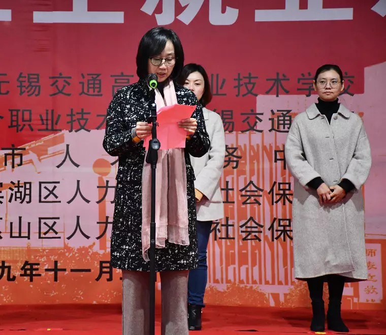 启动仪式上学校党委副书记、纪委书记朱雨兰致辞。朱书记首先代表学校党政,对各位领导和嘉宾的到来表示欢迎和感谢。她表示,多年来,学校认真贯彻落实国家关于加强职业教育发展的有关要求,瞄准市场需求,注重习惯养成,加强对学生的全面培养。学校坚持走“工学结合、校企合作、双证融通”之路,依托行业优势,培养学生掌握符合市场需求的专业技术和实践动手能力。朱书记衷心祝愿所有同学都能找到适合自己的工作,迈出人生重要的一步!也真诚希望各用人单位慧眼识珠,挑选到理想的人才!