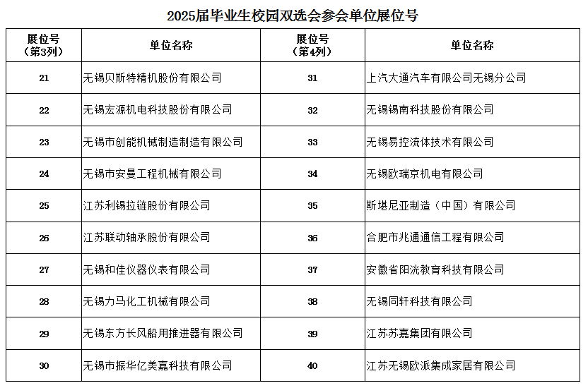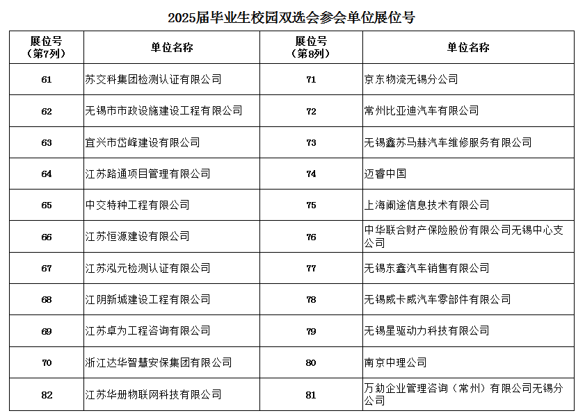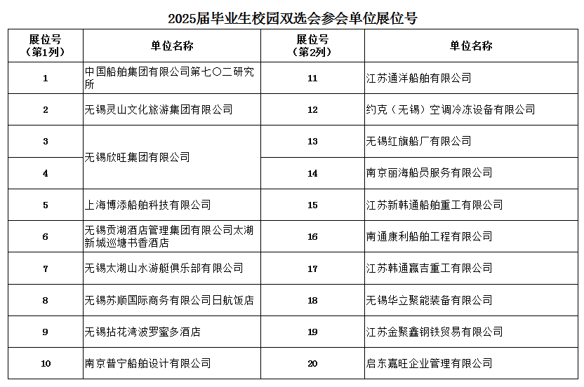 学校2025届毕业生校园双选会参会单位招聘信息公布