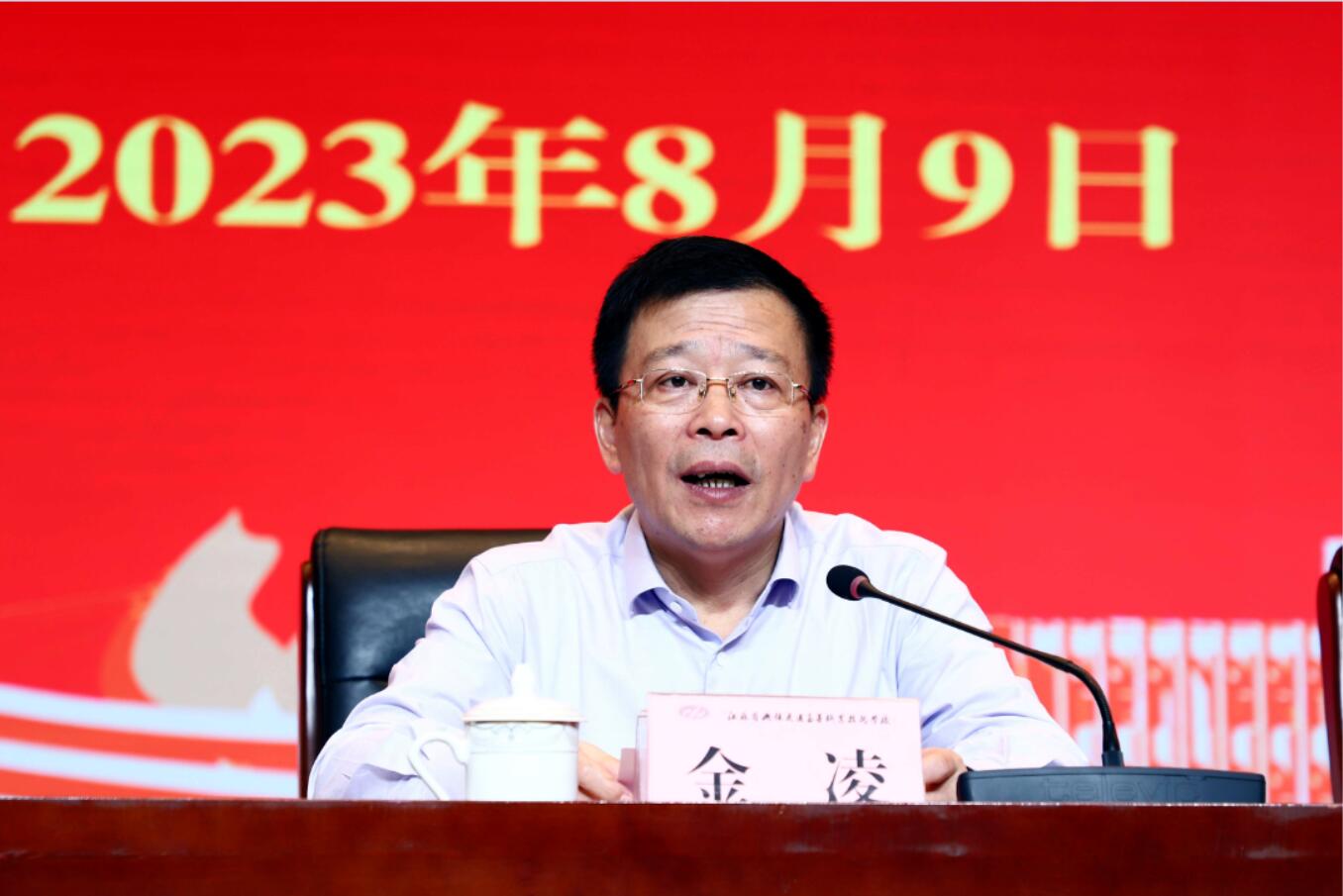 金凌副厅长在讲话中对李虎同志担任校长、党委书记期间,校领导班子建设和办学治校取得的成绩给予了充分肯定,对邢勇同志担任学校副校长、纪委书记期间为学校发展做出的贡献给予了高度的评价,对李进同志的基本情况作了介绍。他指出,厅党组任命李进同志担任学校校长、党委书记是立足学校改革发展需要和领导班子建设实际,经过综合考虑、充分酝酿、慎重研究作出的决定,并就进一步加强学校建设,对新一届校领导班子提出了三点要求:一是坚持以党的政治建设为统领,着力加强党对学校工作的全面领导;二是坚持以内涵发展为抓手,着力推进学校重点工作落实落细;三是加强领导班子和干部人才队伍建设。