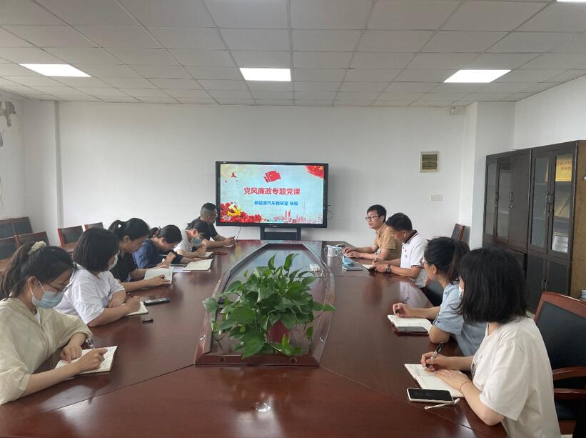 为全面贯彻落实党的十九大和十九届历次全会精神以及中央、省、市纪委全会精神和全省交通运输系统全面从严治党暨警示教育工作会议精神,根据《必一体育·(中国)官方网站关于组织开展党风廉政建设月活动的通知》(省锡交纪[2022]4号)要求,新能源汽车教研室党支部于2022年6月13日组织全体党员和教师在学院会议室开展了党风廉政专题学习会,会议由支部书记张俊主持。