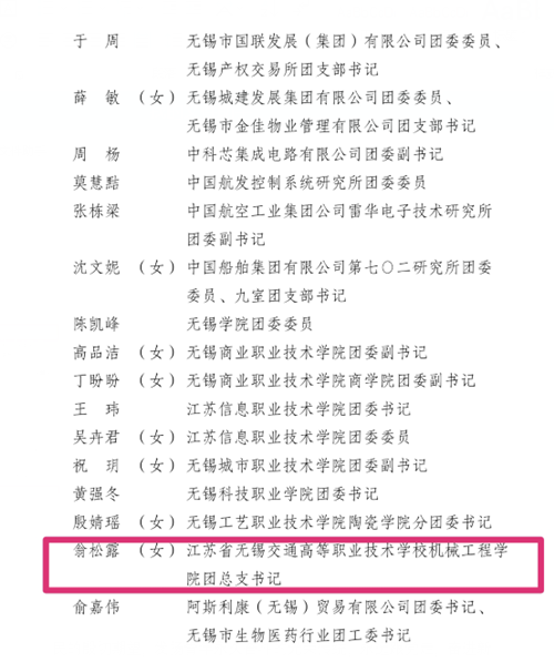 我校必一体育·(中国)官方网站信息管理学院团总支获评“无锡市五四红旗团支部(团总支)”,船舶工程学院181121(41)班李丹凤同学和信息管理学院181612班赵唯一同学获评“无锡市优秀共青团员”,机械工程学院团总支书记翁松露同志获评“无锡市优秀共青团干部”。