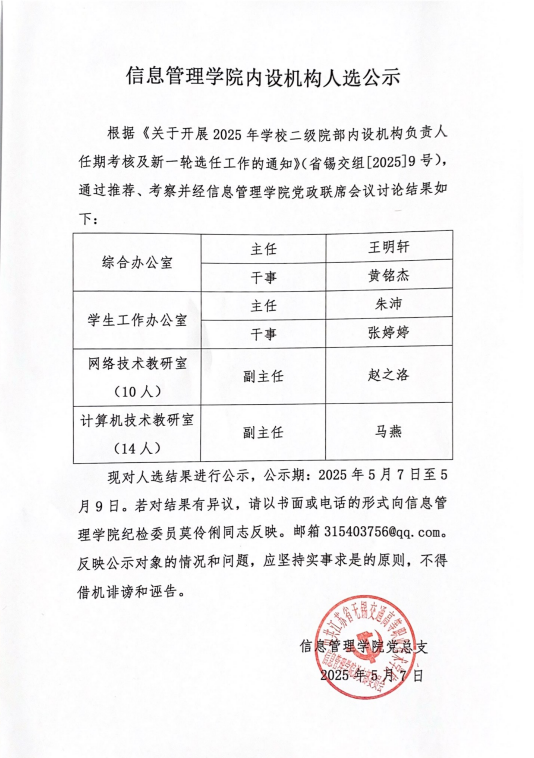 关于学院内设机构调整的公示