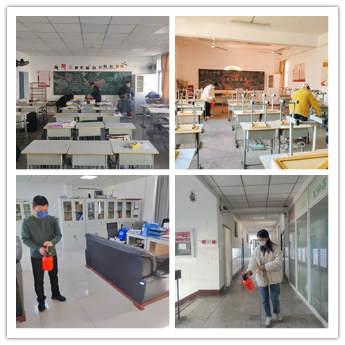 师生戴好口罩、做好防护,对学院教室、宿舍、办公室等进行了全面细致的清洁消杀。在消杀过程中,师生严格按照卫生消毒管理的标准规范,手握喷壶,认真仔细,不放过每一个教室、每一个宿舍、每一个办公区,实现了全覆盖,确保消杀彻底,不留死角,达到有效防疫的目的,确保学院环境卫生安全。