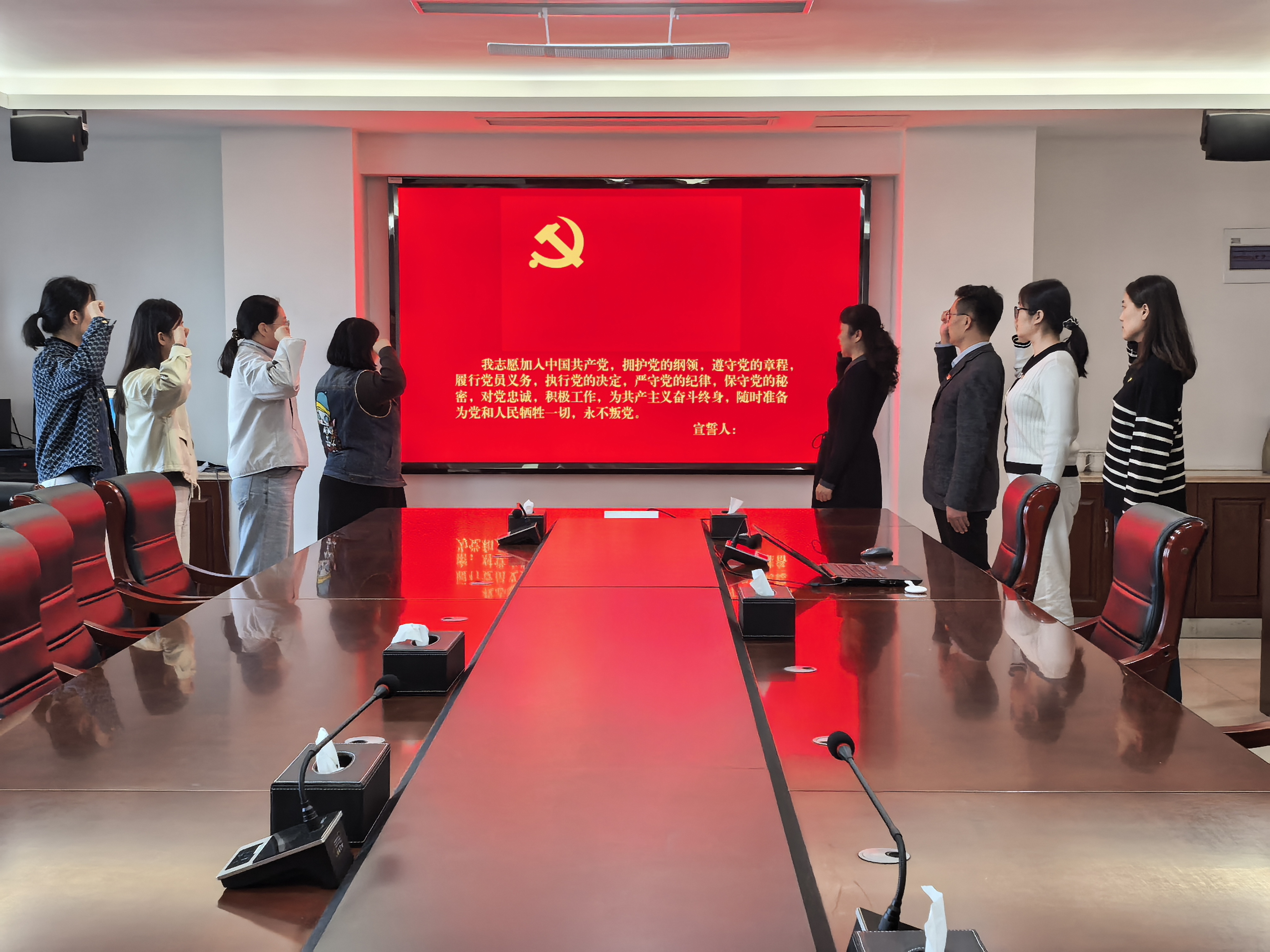 全体党员面向党旗,高举右拳,在领誓人党支部书记邵敏珠带领下重温入党誓词。“我志愿加入中国共产党……”铿锵有力的誓言既是对初心的深情回望,更是对使命的郑重承诺。